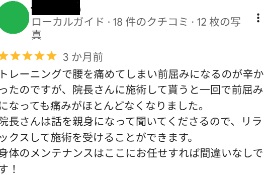 私自身がスポーツをしていて、大きなけがをしてしまい思うようにスポーツに取り組むことが できずに痛みに悩むことがありました。その中でなかなか良くならず やりたいことができないもどかしさでとても感じ暗い気持ちになっていました。 そういう経験があるので皆様には悩んでいる時間や痛みなどが原因で何かをあきらめることをしてほしくなくて 皆様が悩みなく明るい未来に向かっていきいきとすごしていただくことが僕の願いです。それを実現できるように 僕自身も日々学びその知識を皆様に還元させていただきたいと思っています。もし悩みであきらめようとしてるなら 僕もあきらめないので一度訪ねていただけたら幸いです