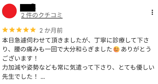 痛みや痺れでなかなか治らないとあきらめていませんか?機能解剖学、運動学、神経学を開院以降 学び続けその知識や技術を活かし多角的な視点でお体のお悩みの原因を探りその部分に対して適切な方法で 施術させていただきます。